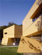 A ces éclatements de volumes colorés répondent, les objets, blocs plus compacts, plus intériorisés, des équipements publics qui s’affirment face à la nature ou à la ville comme des masses calmes et sereines. L’Hôtel des Impôts de Brive-la-Gaillarde, l’Université d’Agen, l’école Moskowa, le palais de justice de Narbonne se posent comme des monolithes en suspension.